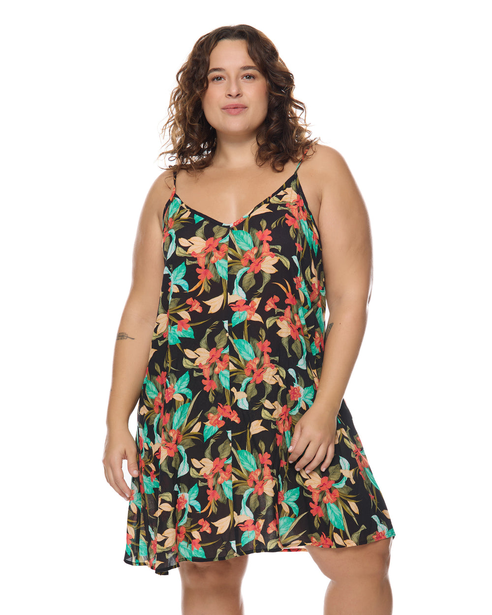 Nicole Dress Plus Size - Black/Hamoa Prt
