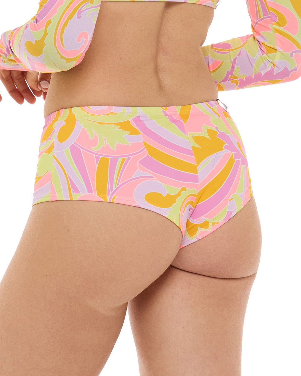 Amina is the go-to surf short for effortless style and performance. With a low-rise fit and mid coverage, it offers a comfortable, streamlined silhouette perfect for catching waves or lounging by the shore.