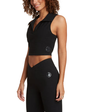 Full Of Secrets Polo Crop Top - Black
