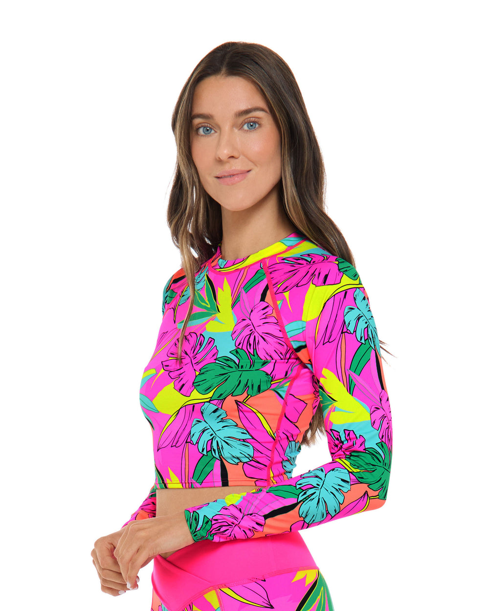 As you feel the waves beneath you, take a moment to breathe and simply let it be. This cropped rashguard is the perfect partner in crime for when it’s time to face the surf, made using sun-protective UPF 50 fabric with a hint of shine. Let It Be’s classic silhouette also features long sleeves, a crew neck, and flatlock seams.