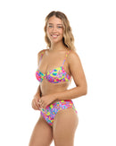 High-waist silhouettes are all the rage these days, so we would be remiss not to offer the perfect higher-rise bottom as part of our collection. The Nuevo Contempo is a fuller coverage piece that hits near the belly button with multi-strap sides that hug the body just right.