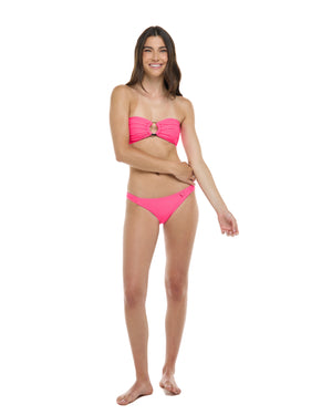 Irene is your ultimate beachside companion exuding effortless charm! This bandeau top boasts captivating front ring and pleat details, adding a touch of sophistication to your swimwear collection. With its sash tie back, Irene ensures a secure yet stylish fit for all your sunny adventures.