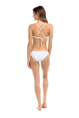 Introducing Patsy, the ultimate underwire top for all your beach adventures! This must-have bikini top features removable soft cups for customizable comfort and support. The two-way tie back ensures a secure fit while adding a flirty touch to your swimwear style.